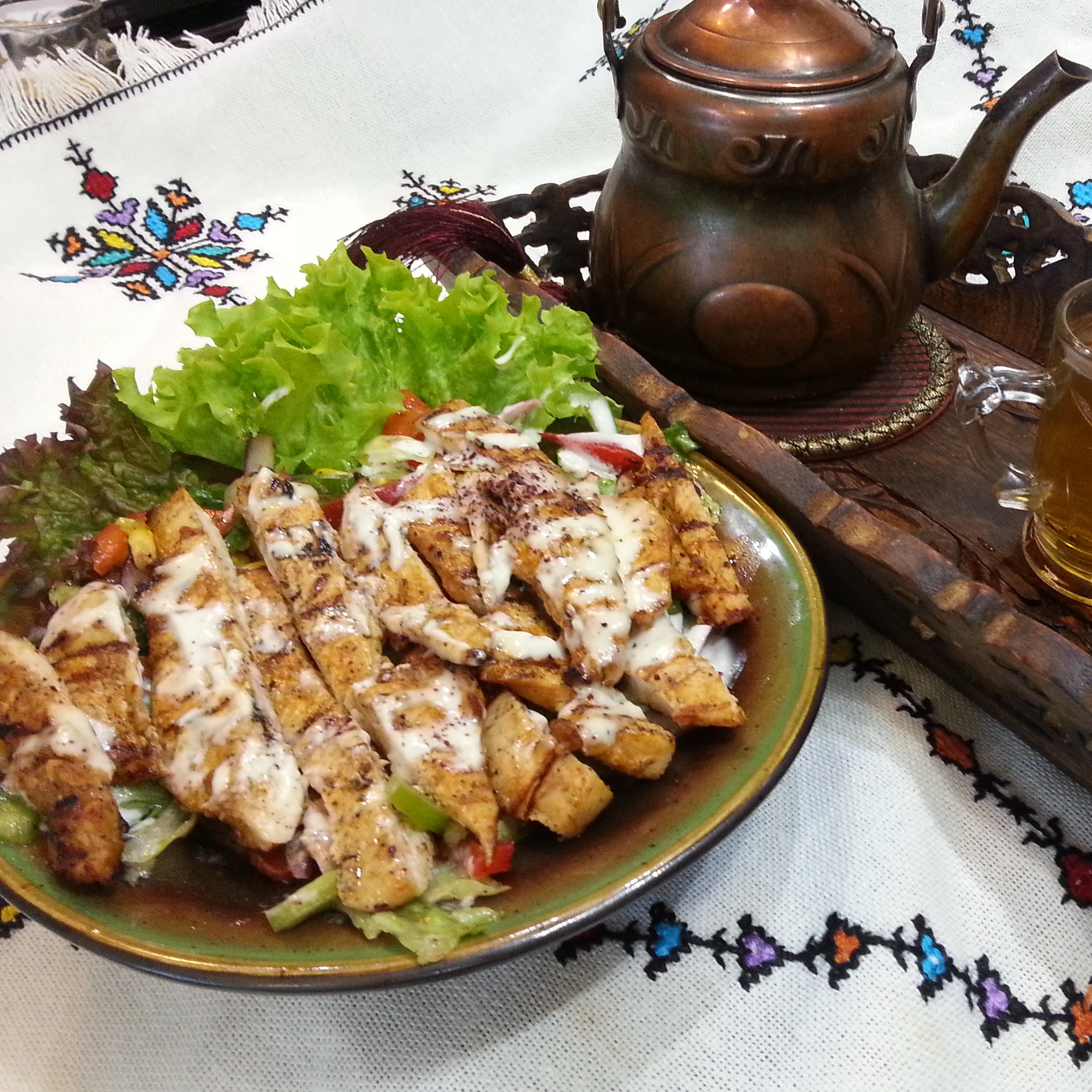 W lokalach dostępne do nabycia są również liście winogron nadziewane ryżem i warzywami oraz pasty typu hommos lub bakłażan oraz fajki wodne i ich akcesoria.