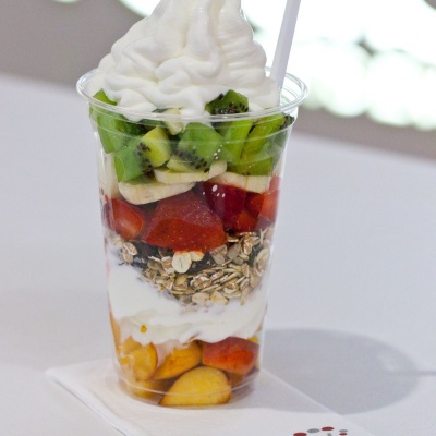 W menu kawiarni znajdziemy świeże zupy, słodkie i wytrawne naleśniki, pancakesy z polewami i dodatkami, tosty oraz hit zwłaszcza w sezonie wiosna-lato: mrożony jogurt naturalny. 100% smaku bez zbędnych kalorii. Mrożony jogurt to deser na bazie naturalnego jogurtu - zdrowa alternatywa dla klasycznych lodów (jogurt zawiera wapń, proteiny oraz żywe kultury bakterii).