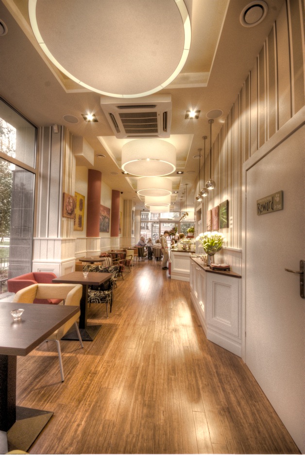 Piękne wnętrze, wspaniałe domowe wypieki (szarlotki, torty bezowe, tarty owocowe, ciasta czekoladowe), wyśmienita kawa przygotowywana według najwyższych standardów, różne rodzaje aromatycznych herbat, szeroki wybór koktajli owocowych, a także jedzenie na słono takie jak: tortille, grillowane focaccie, grande bruschetty, sałatki, kanapki na bajglach lub ciabattach, zupa dnia).