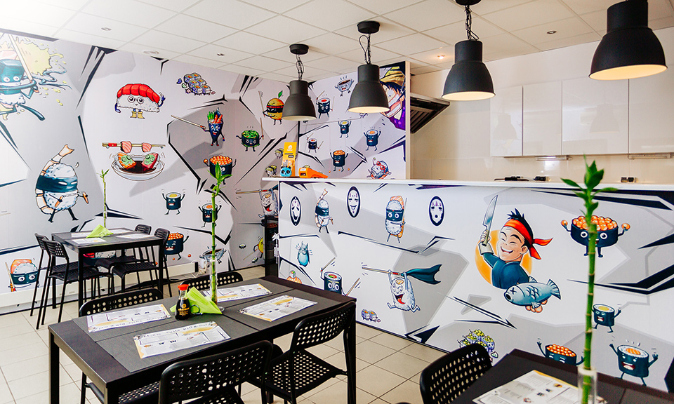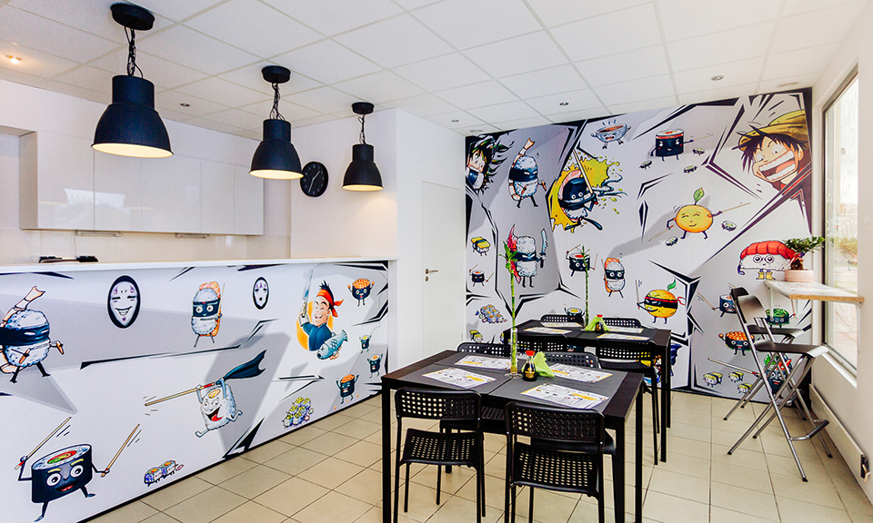 Owocem współpracy z grafikiem, który uczestniczył w m.in. produkcji pewnej bardzo udanej polskiej gry jest wnętrze lokalu. Niepowtarzalne i odzwierciedla doświadczenia z kulturą japońską nie tylko w jej kulinarnym wymiarze, ale także popkulturowym (na co składają się kultowe gry, kreskówki, czy komiksy lat 90-tych, takie jak chociażby Final Fantasy VII i Dragon Ball Z).