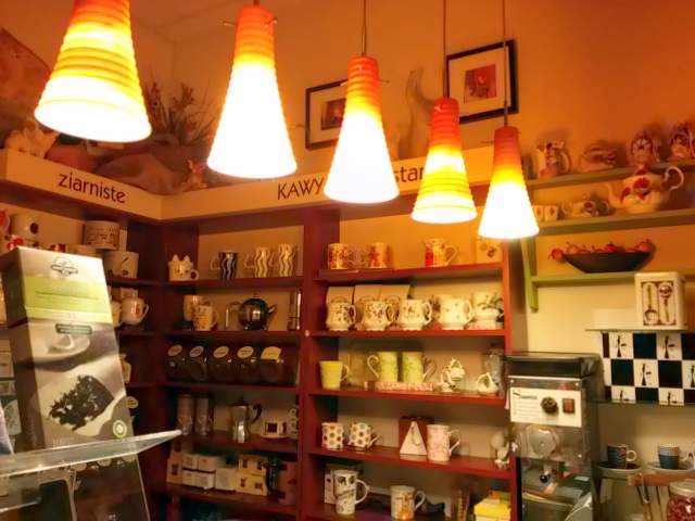 Duży wybór porcelany, kawy i herbaty z całego świata, puszek do przechowywania kawy i herbaty.