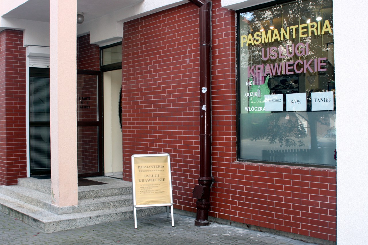 Punkt połączony z pasmanterią. W ofercie również nabijanie nap i obciąganie guzików.