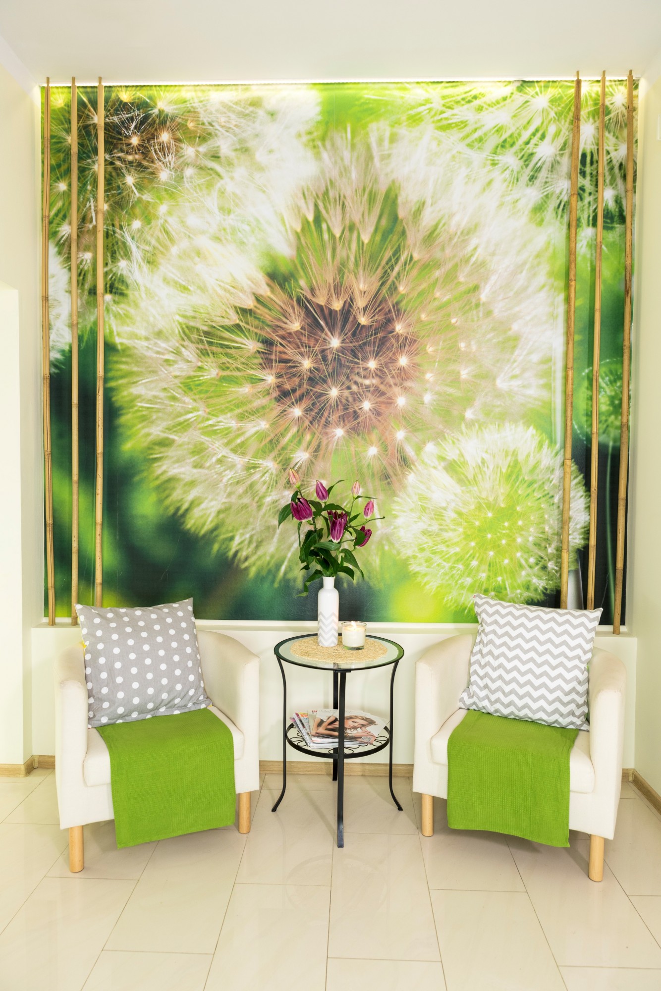 Symbolem salonu są Gejsze - uosobienie wdzięku i piękna, mistrzynie pielęgnacji urody. One też witają przychodzących - smukłe, barwne figurki z porcelany. W pozie pełnej szacunku dotrzymują towarzystwa i strzegą salonu przed jakąkolwiek złą energią.