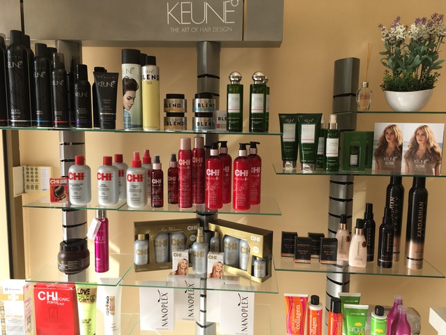 Styliści w salonie pracują profesjonalnymi narzędziami, stosując sprawdzone i wyselekcjonowane kosmetyki takich marek jak: KEUNE, GOLD WELL, FAROUK, KARDASHIAN BEAUTY. Doradzają jak pielęgnować włosy w domu i pomagają wybrać odpowiednie profesjonalne kosmetyki do pielęgnacji włosów. Salon prowadzi SPRZEDAŻ KOSMETYKÓW.